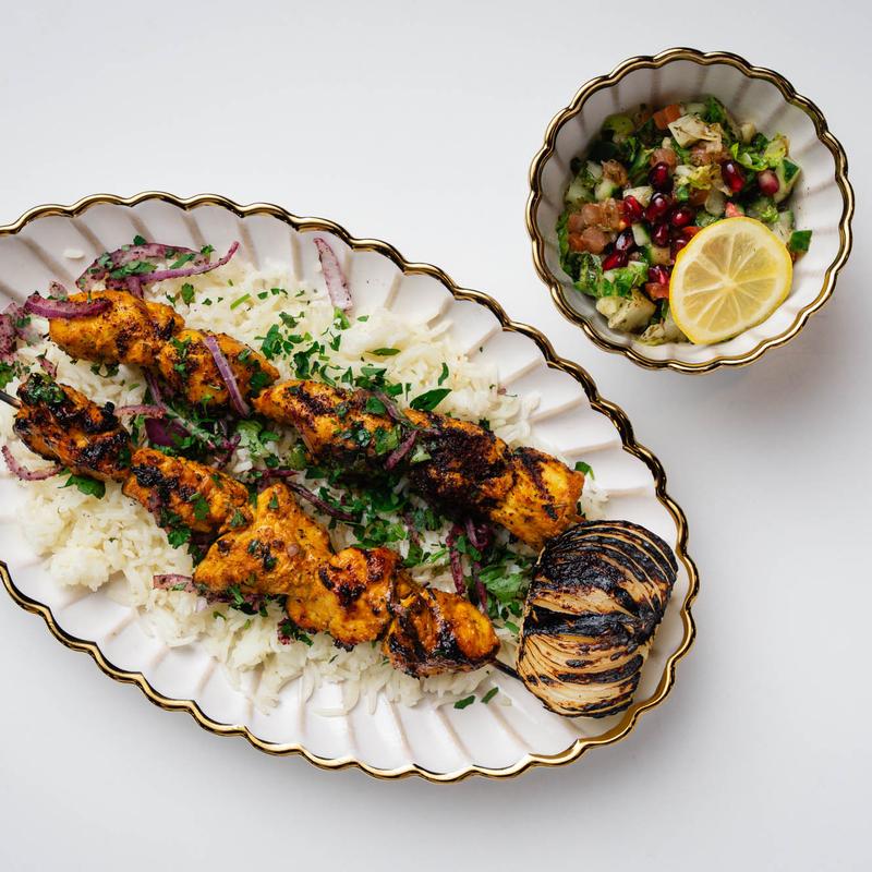 2 chicken pieces with rice, jammed, nuts, pickles, and onion | Lamb +$5.00