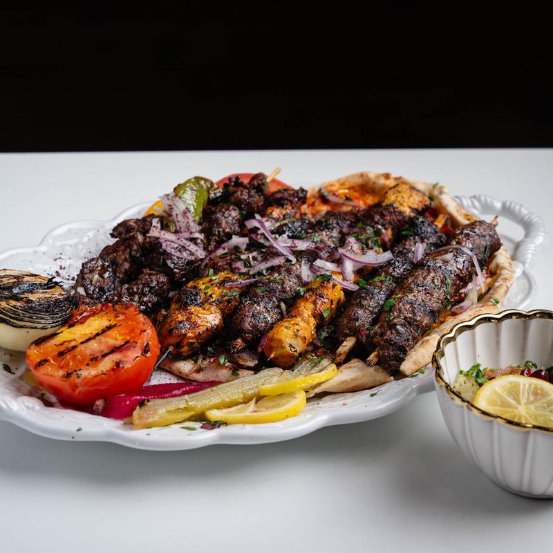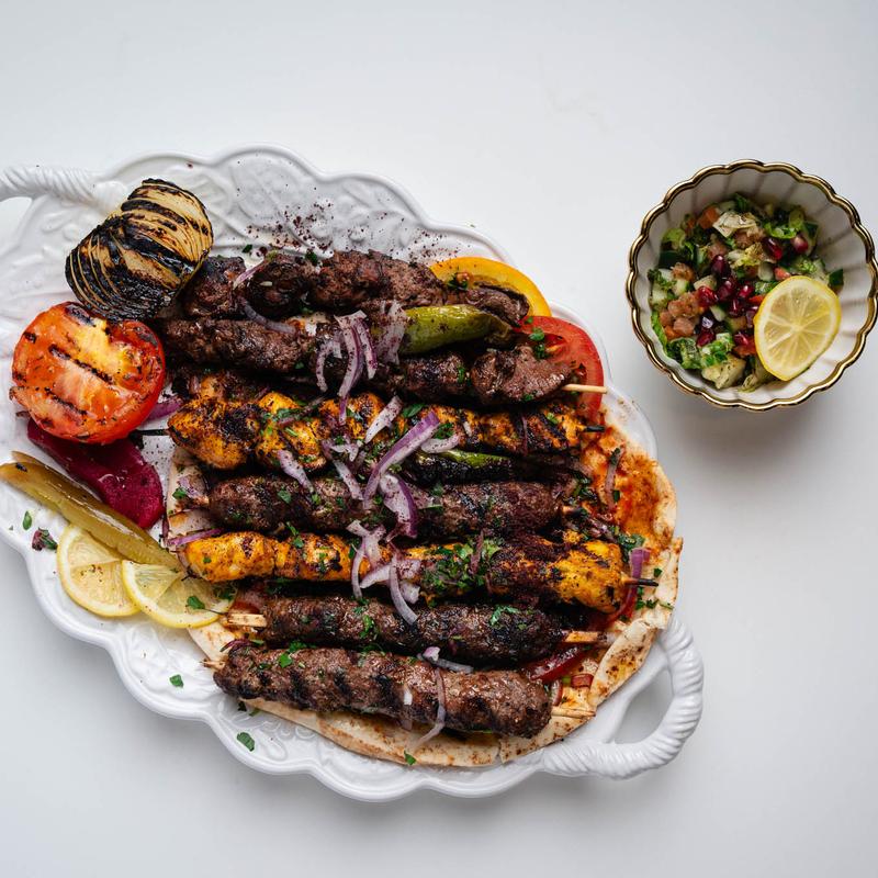 1 chicken kabab, 1 beef kabab, 1 kofta