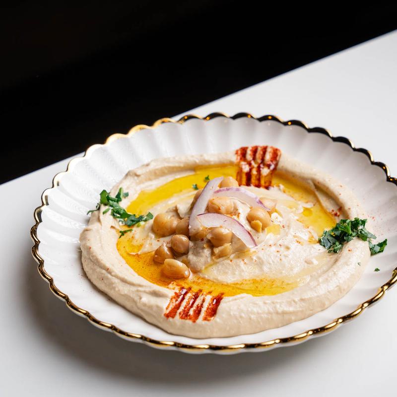 Creamy chickpea puree, tahina, lemon, olive oil | Add on diced beef or chicken shawarma